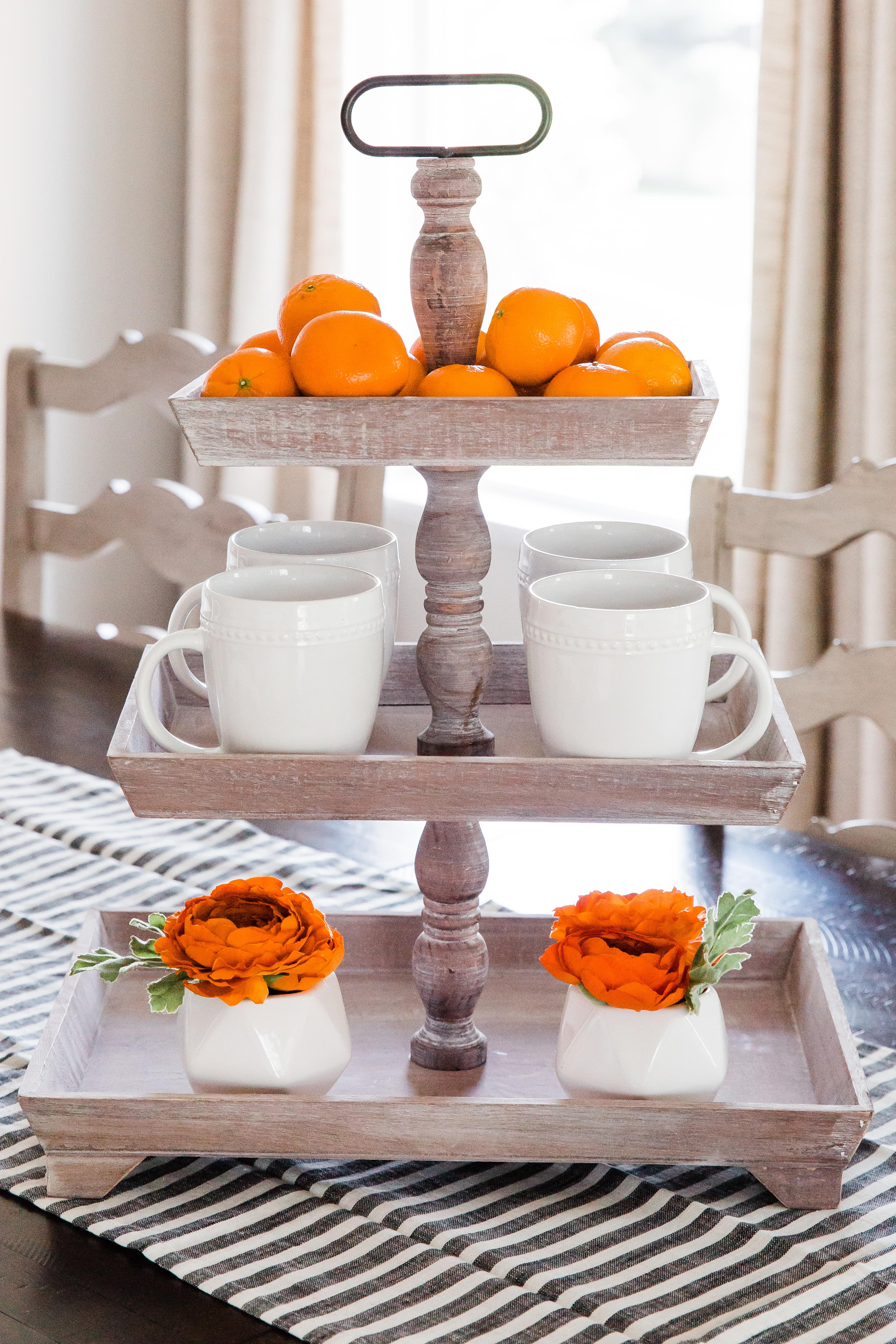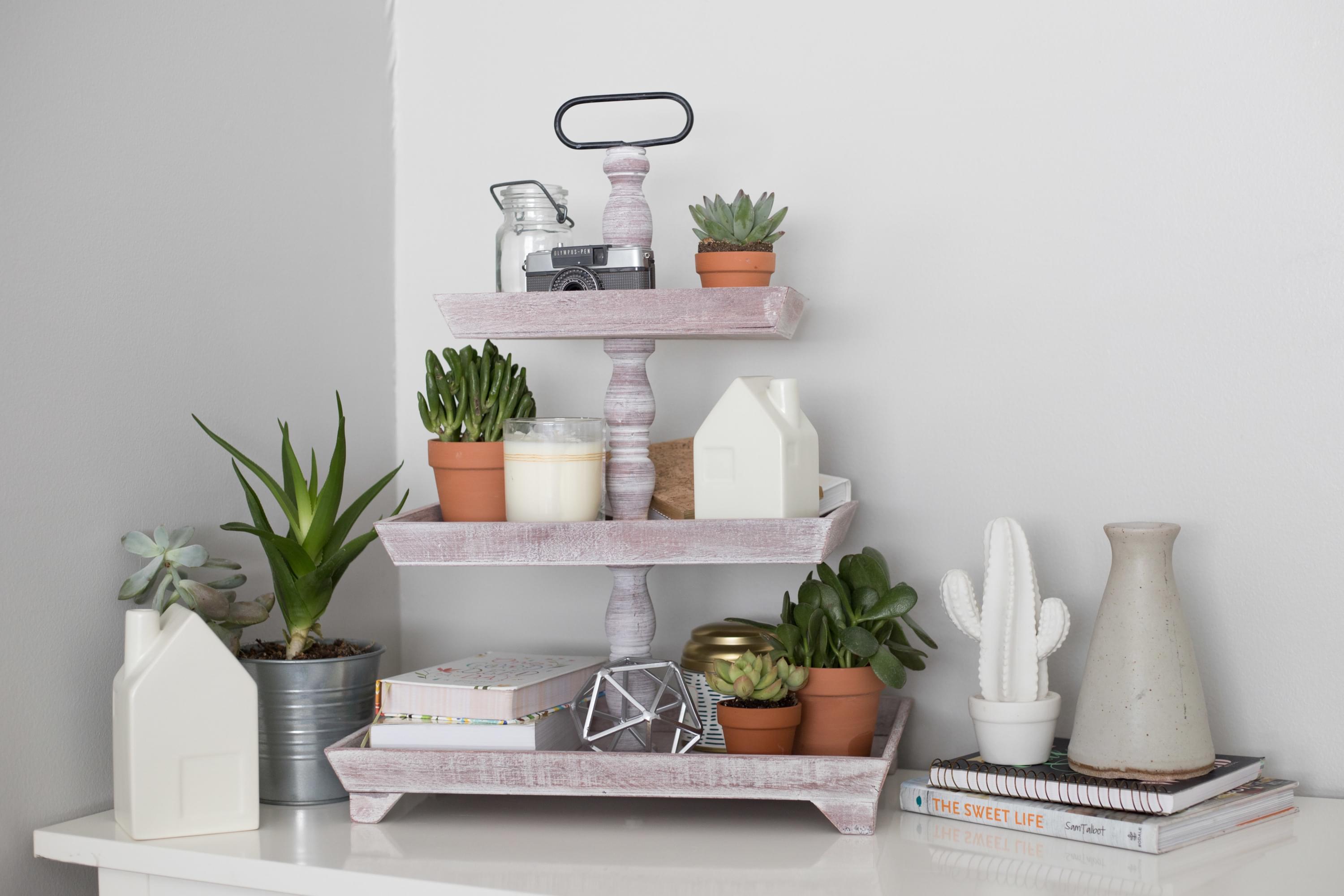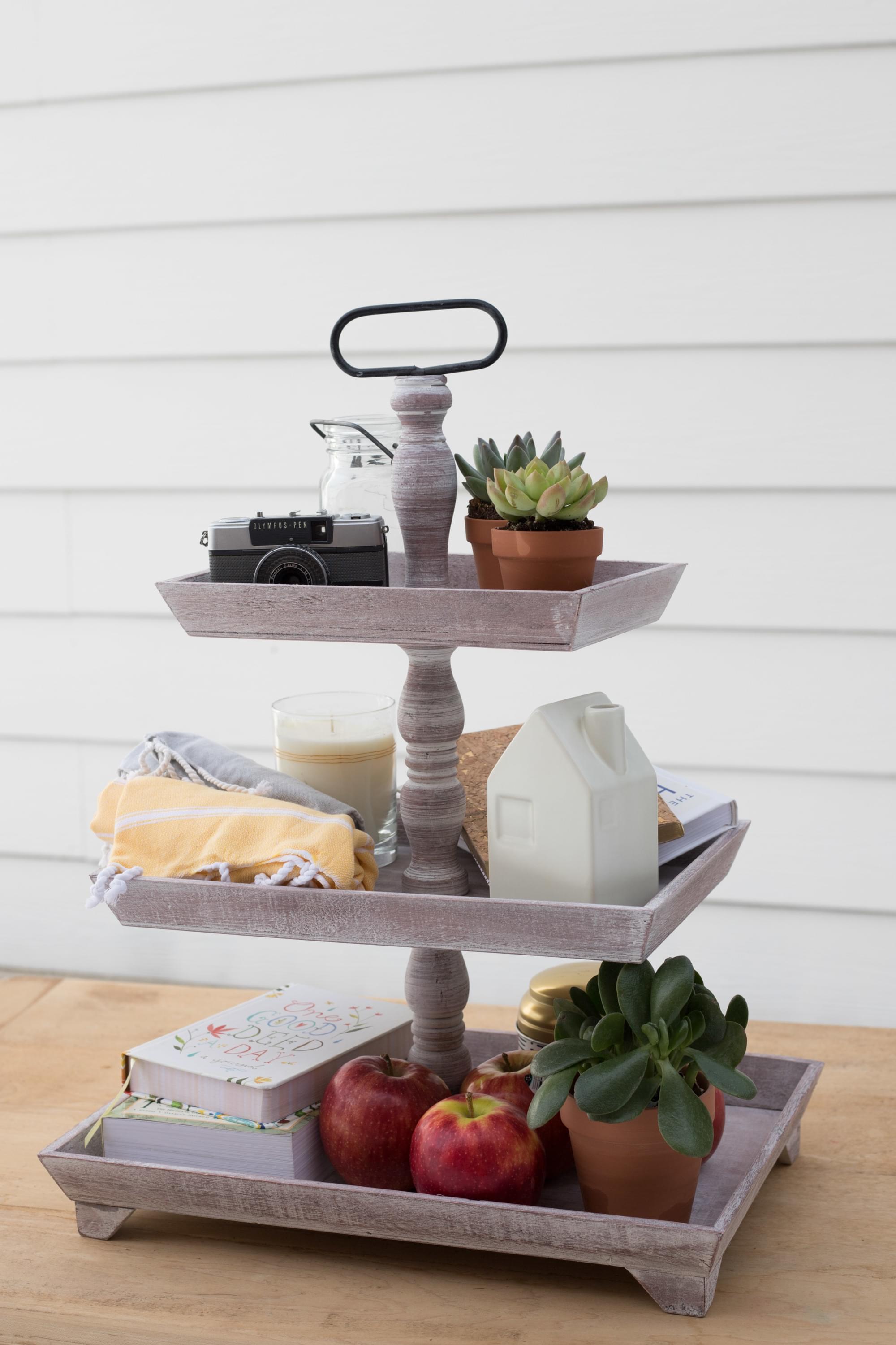 How about all of them? Because now YOU CAN (and they'll look fantastic) on a three-tiered wooden tray! We love a good serving piece, and this one is no exception.